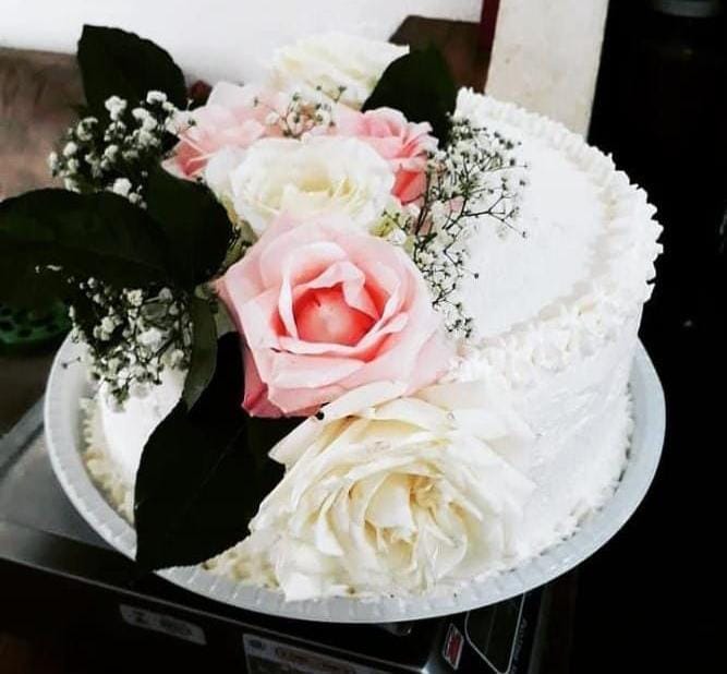 Bolo Espatulado em Chantily branco e com todo charme de rosas. Com a delicadeza de tamanho sem perder o seu charme...o que vem dentro? a surpresa que você escolher!